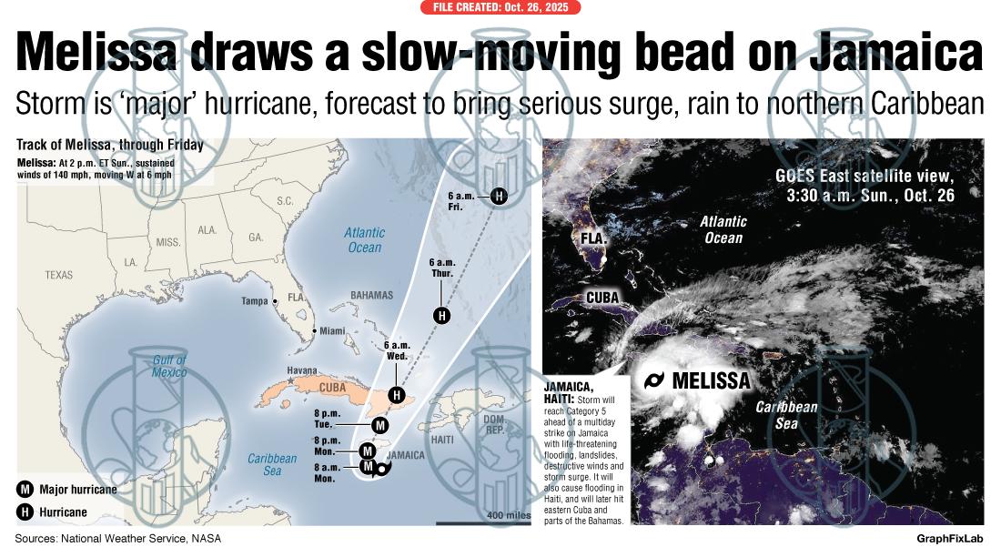 The strong but slow-moving hurricane will severely strike Jamaica, Cuba, parts of the Bahamas, and cause dangerous storm surge in Haiti.
