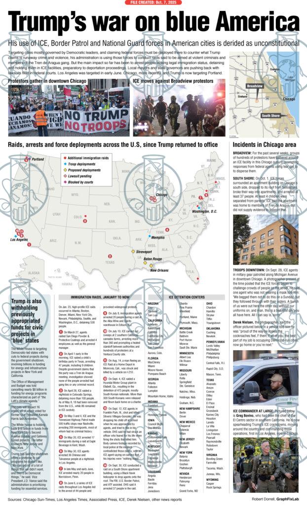 Map and photos round up ICE immigration raids and National Guard deployments around the U.S. since Trump returned to office.